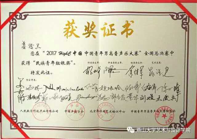 我校365英国上市公司15级硕士研究生姜俊卫荣获民族青年组银奖的好成绩,继今年音乐政府奖金钟奖以来他再次为我校取得了荣誉。