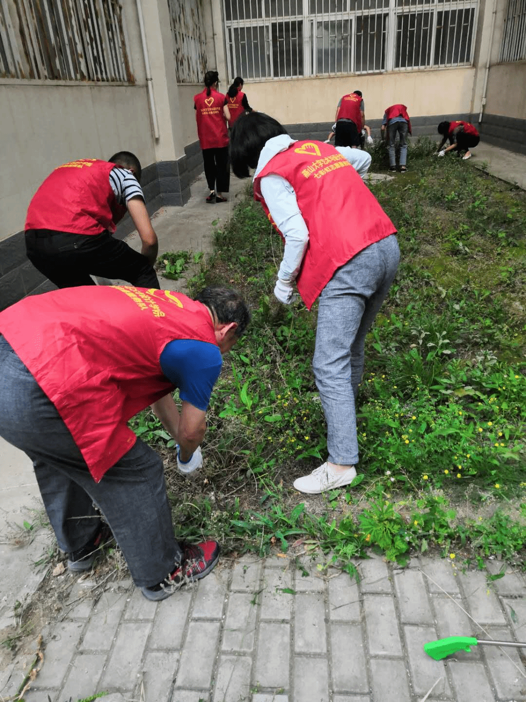 之后,党员们在楼宇周边开展了细致的清理活动,草坪里的烟头、杂草、纸屑等都被仔细清理干净。活动中,大家齐心协力,不惧脏、不怕累,一个个干劲十足,充分发挥了共产党员的先锋模范作用,以实际行动做到了“助力创卫”的排头兵,经过一个多小时的清理,学院环境焕然一新。