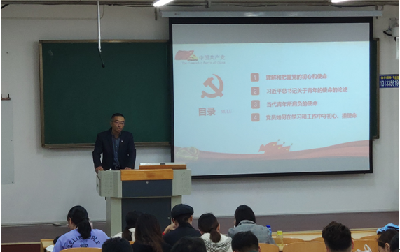 党课共分为两大部分:如何理解使命和初心、如何守初心担使命。王继东书记以习近平总书记在党的十九大报告提出的“中国共产党人的初心和使命,就是为中国人民谋幸福,为中华民族谋复兴”开篇,阐述了从建党初期共产党人如何坚守初心、坚定信仰,到改革开放以后直至新时代,共产党人如何顺应时代变化,肩负起人民赋予的历史使命。其次,王继东书记结合近年来国家和学校在文化建设、思想建设、科技发展、人才引育等方面取得的重要成果,勉励全体青年大学生党员要把初心和使命牢记心间、落在行上,始终保持忠诚的政治品质,始终保持干净的政治本色,始终坚守担当的政治责任。
