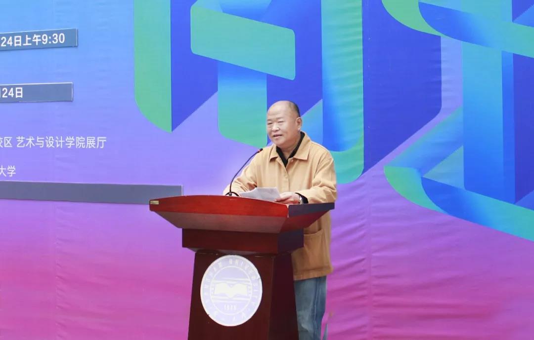 开幕式由赵琳副院长主持。首先,宋鸿筠主席在开幕式上致辞,他对我院学生培养和艺术创作给予了高度肯定;随后,孙利院长在开幕式上讲话,他对七位指导老师的辛勤付出表达了敬意,他表示:学院将会在教师与学生相互配合以及实践创新能力的提升、学生审美能力的培养等方面继续完善和加强,让课业成果展示环节常态化,使设计专业学生的学习成果更加具有实际意义。
